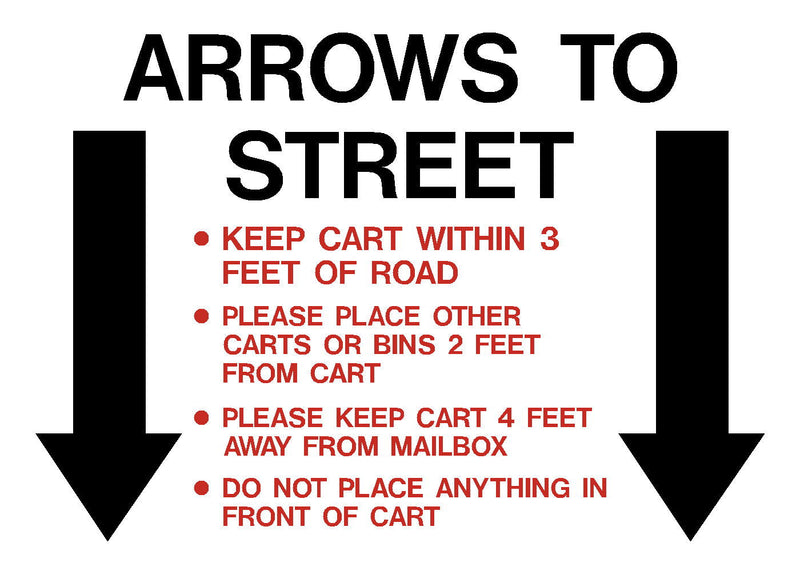 Direct container placement with confidence using our "Arrows to Street" Directional Decal. This high-visibility decal provides clear orientation guidance for dumpsters, containers, or equipment, helping ensure proper alignment for safe loading, unloading, and pick-up operations.