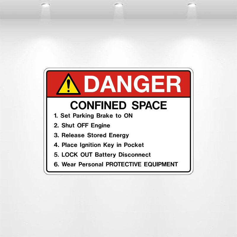 Alert workers and visitors to potential hazards with this bold “Danger: Confined Space” warning decal in high-visibility red. Designed to comply with OSHA safety standards, this durable label is ideal for marking vaults, tanks, silos, and other restricted entry areas.