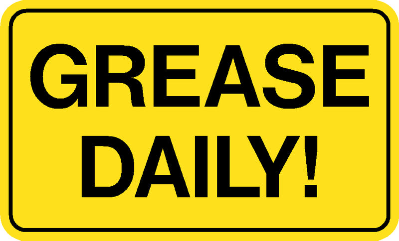 Bold “Grease Daily” message ensures consistent equipment maintenance